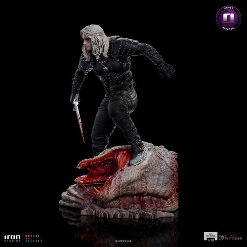 His piercing gaze, the scar that marks his face, and the long white hair flow over the distinctive armor of the witchers from Kaer Morhen, capturing every detail of his unmistakable look. Faithful to his portrayal in The Witcher series, Iron Studios proudly presents the statue “Geralt of Rivia – The Witcher – BDS Art Scale 1/10”, immortalizing the monster hunter in a dynamic and powerful stance.