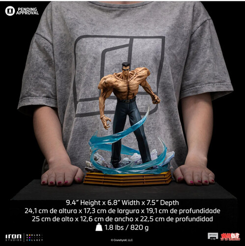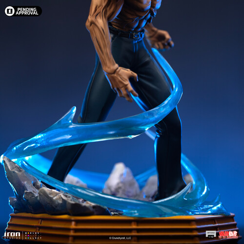 As a demon, Toguro possesses the ability to control his own musculature, adjusting the percentage of power he releases, exponentially increasing his strength and body size. The statue portrays him at 80% power, showcasing his massively enhanced physique with bulging muscles that completely transform his appearance. The base features a swirling wave of demonic energy, surrounding the character in the "Toguro – Yu Yu Hakusho – Art Scale 1/10" statue by Iron Studios, faithfully depicting his final showdown with Yusuke Urameshi during the Dark Tournament.