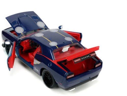 Meticulously styled and inspired by the God of Thunder, this 2015 Dodge Challenge SRT8 Hellcat features sleek lines, with iconic logos and Asgardian wings. This vehicle features opening doors, hood, and trunk along with a detailed interior. Accompanied by a 2.75" 100% die-cast collectible Thor figure wielding Mjolnir, this ride is fit for the Gods. Collect all the Marvel inspired by die-cast vehicles with figures.