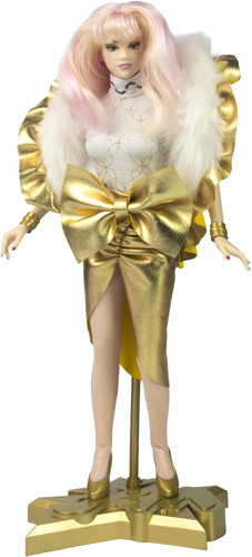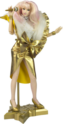 This 12" deluxe fashion doll celebrates Jem’s iconic Glitter & Gold look with sparkling fashion pieces and dazzling accessories. With 28 points of articulation, Jem can strike superstar poses in two signature outfits: her golden concert look and a sophisticated style for her Jerrica persona. Glitter & Gold Jem includes a special "VIP" collector's package with a commemorative concert ticket, VIP badge with collector card, sticker sheet, and more! Press the top of her speaker stage stand to play the remastered “Glitter and Gold” song, and get ready for a show that’s Truly Outrageous!
