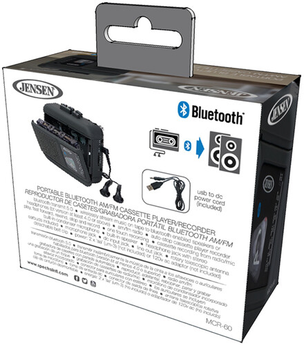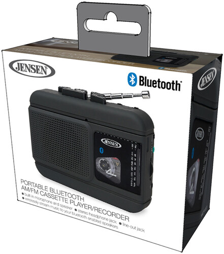 The JENSEN® MCR-60 Personal Cassette Player/Recorder is portable, convenient and features Bluetooth connectivity for streaming your music to other devices. The unit also includes an AM/FM radio, so take it to the beach, the ball game, or anywhere else you want to listen to your favorite radio station, play old mix tapes, or audiobooks. Enjoy clear, static-free audio from the built-in speaker or using the included wired earbuds. You can even stream wirelessly to Bluetooth enabled headphones or speakers up to 33 feet away!
