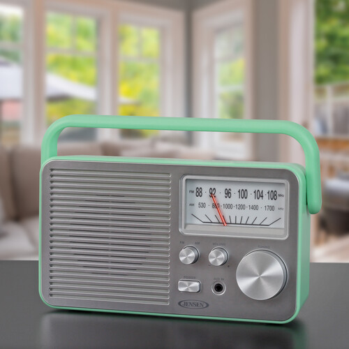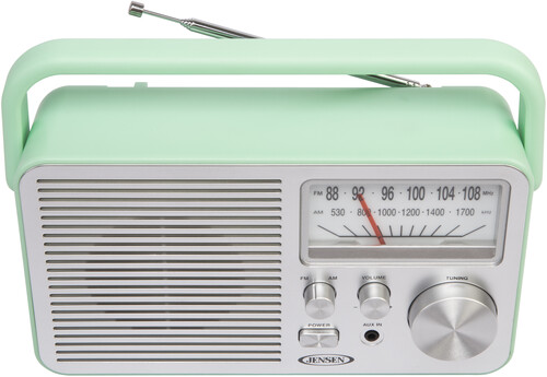 Never miss your favorite game, listening to your favorite radio station or catch up on the latest news with the JENSEN® MR-750 portable AM/FM radio. The radio can go anywhere you go and is available in three stylish colors with a large analog tuning dial that makes setting your favorite station a breeze. You can also play music from an MP3 or other digital media player using the front mounted auxiliary input jack.