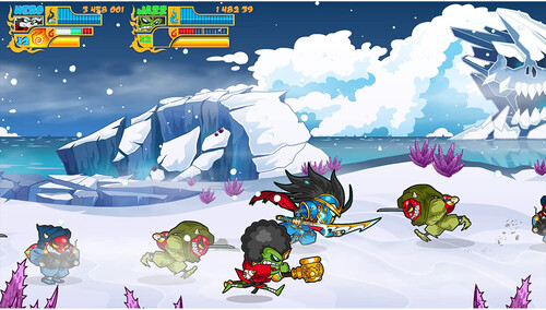 This is the story of the legendary, hidden Kusanagi Stone and the warriors seeking it. Containing the soul of a powerful demon, the Kusanagi stone can grant godly powers to those who awaken it. Now, the wicked sorcerer Origami has summoned and cursed ancient warriors to find the stone for him. Hero, Baby, Jazz and Aros - together they are the Jitsu Squad!Control the entire Jitsu Squad in single-player mode or play with up to 4 people in local couch co-op. Tag team mode makes it possible to play online or locally with one friend, where each player chooses two characters!