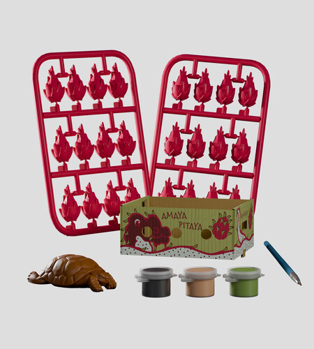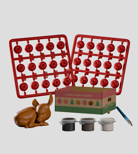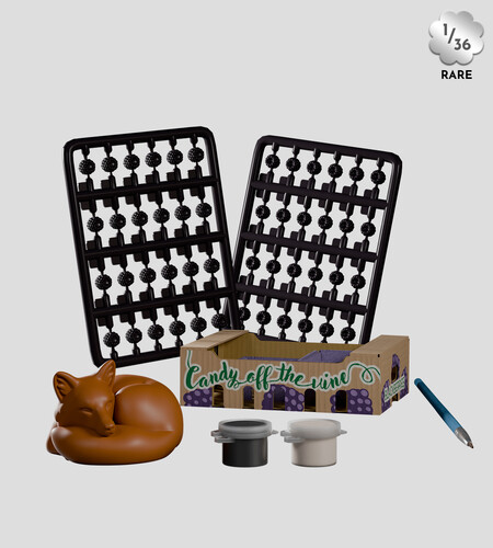 This is a quick crafting figure, each box comes with one napping animal, their favorite munchies, a shipping box to pack them into, and some paint to decorate your fruits and veggies.