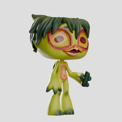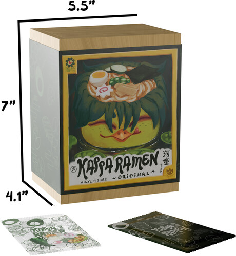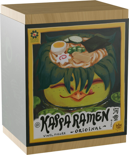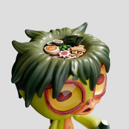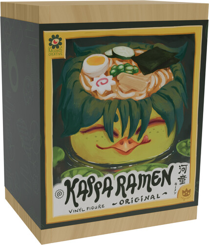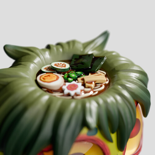 An artist series vinyl figure of a kappa (a water imp from Japanese folklore). The indent in his head which would normally contain water holds various other things, changing his appearance and personality. Kappa Ramen is a word play on cup ramen (pronounced kap-pu ramen in Japanese).