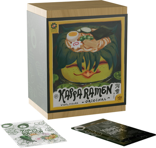 Each Kappa comes with a figure, an extra set of arms, a prop for him to hold, an art card, and a pack of flake stickers, all packaged in a real wooden box.