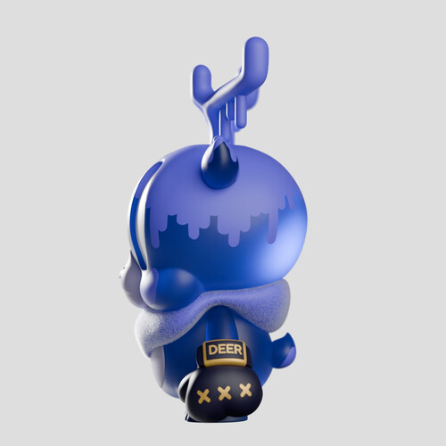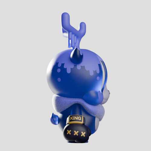 The original King Deer is inspired by that moment when, on a dark road, a deer comes out of nowhere. Purple hues suggest the darkness of night, while large white eyes and translucent body add to an ethereal encounter. Accents of gold and flocked collar let you know that this deer is very real, and not messing around.