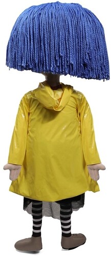 Packaged in a gift box, she comes complete with button eyes, blue yarn hair, and a slick yellow raincoat.