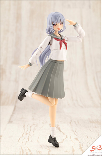 Newly Sculpted Lower Body and Long Skirt: The legs are sculpted with folded-down white school socks, giving her a somewhat retro and sophisticated look. The kit also includes the three original skirts from SOUSAISHOJOTEIEN: Standard, flowing, and sitting with knees to chest. Parts can be swapped out to pose her standing elegantly or sitting down. *The skirts are not double-jointed or articulated as in the 【MARIA KAGARIBI COSTUME】 kit.
