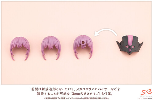 Hairstyle: The kit features a calm pink twin-tail hairstyle and newly sculpted bangs. Three interchangeable bangs are included: Standard, Glasses-Compatible, and 3mm Connector Type (for attaching items like a Megalomaria visor). Customize to match a variety of scenes and scenarios. *The back hair is the same shape as the twin tails of Madoka Yuki【TOUOU HIGH SCHOOL WINTER CLOTHES】.