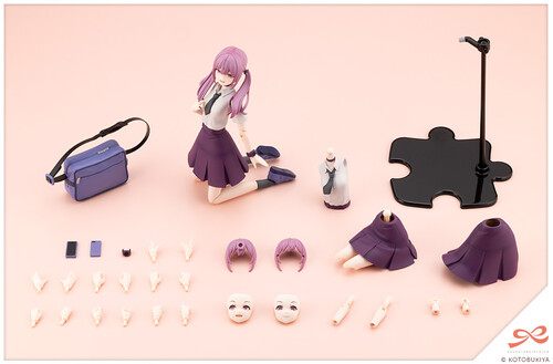 Body: This kit uses the Yomi body. It comes with eye-catching accessories such as a wristwatch and a choker. In addition to the standard standing torso, the set includes a left shoulder raised torso (for reaching poses) and sitting legs. The kit includes three types of skirts: Regular, flowing and sitting. While featuring an all-new color, the model can still be customized with other parts and offers a wide range of poseability, retaining its original play value.