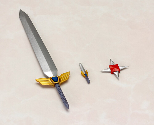 The kit includes a Kaiser Shot shuriken. His deadly Kaiser Sword is also included as a stored version and a fully expanded version.