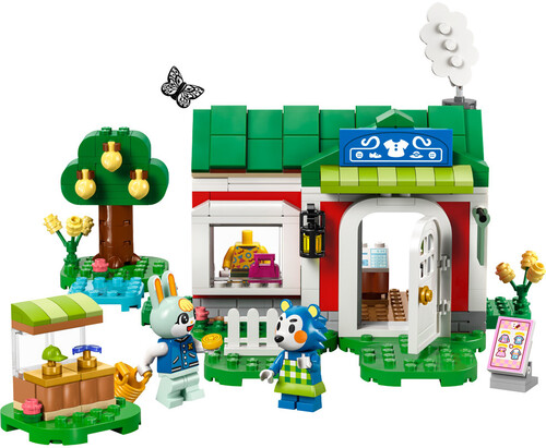 Shop toy for kids includes 2 LEGO® Animal Crossing™ minifigures, Sasha and Mabel from the Able Sisters shop, and lots of clothing accessories.