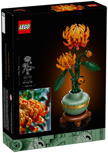 - Blooming buds – The LEGO® Icons Chrysanthemum with posable leaves and petals, captures the vivid orange flower in various stages, including 1 in fu ll bloom, 1 blossoming and 2 in bud