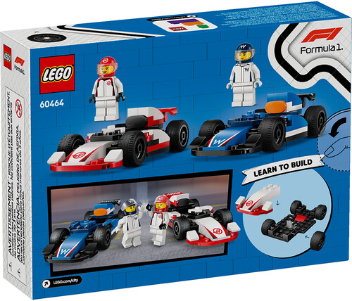 Bring the excitement of the track to your kid’s playtime with this LEGO® City F1® Williams Racing & Haas F1® Race Cars (60464) Vehicle Toy Set for Ages 4 and up. Perfect for young race enthusiasts, this F1 LEGO set features 2 realistic Formula 1® race car toys with slick tires. Just add the Williams and Haas driver minifigures and let the racing fun begin. Discover the dynamic lineup of F1-themed LEGO building sets for kids and adults. This easy-build F1 toy car set includes a LEGO Starter Brick element, a pictorial guide and 3D instructions in the LEGO Builder app – a digital building companion with zoom and rotate tools that enable kids to visualize models from all angles as they build. Children grow up surrounded by amazing vehicles and machines, and with LEGO City building sets they get to explore them up close with realistic models and fun characters for role play. Kids can add this car racing set to others (sold separately) from the LEGO City range.