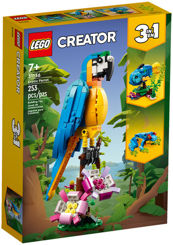 - 3in1 exotic animal toys – Kids aged 7+ can step into a rainforest with the LEGO® Creator 3in1 Exotic Parrot (31136) playset, featuring a parrot, a fish and a frog