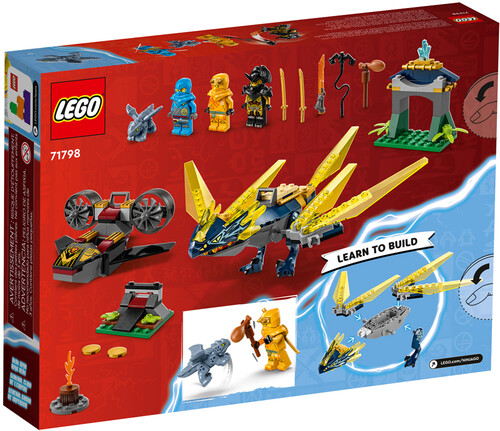Nya and Arin’s Baby Dragon Battle (71798) playset is the ideal way for kids aged 4+ to learn how to build as they recreate amazing scenes from the NINJAGO® Dragons Rising TV series. The action-packed building set features 2 dragons, a jet plane and a hideout cave with energy crystals, plus 3 minifigures to inspire countless hours of gripping role play. Beginner LEGO® set teaches kids how to build The LEGO NINJAGO playset has been specially designed to give kids aged 4+ a great build-and-play experience. Inside the box, each bag of bricks has a model and a character to build so kids can get the action underway quickly. There is also a Starter Brick that provides a partly constructed base to get kids building. A fun digital experience for little LEGO builders Let the LEGO Builder app guide you and your child on an easy and intuitive building adventure. Zoom in and rotate models in 3D, save sets and track your progress.