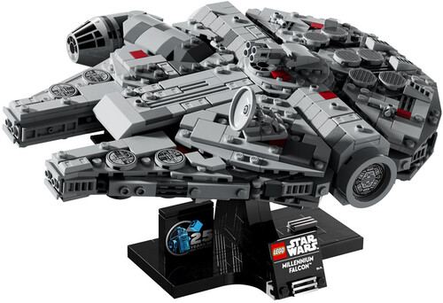 - Made for display – The buildable stand has a nameplate and LEGO® Star Wars™ 25th anniversary brick, and it’s designed to display the Millennium Falcon at a dynamic angle