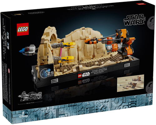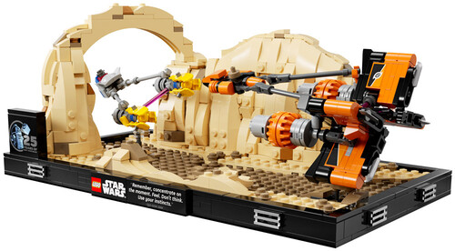 - Made for display – The set features the Arch Canyon part of Tatooine’s Mos Espa Podracing circuit, plus a LEGO® Star Wars™ 25th anniversary brick and a plaque with a Qui-Gon Jinn quotation