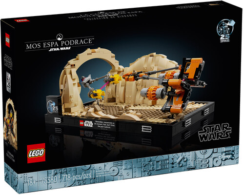 Freeze-frame a moment from the thrilling Mos Espa Podrace with this LEGO® Star Wars™ Diorama (75380) buildable model kit for adults. This collectible building set invites you to channel the force, as Anakin Skywalker did in the Star Wars: The Phantom Menace adventure, to create a LEGO brick-built snapshot of his Podracer powering through Arch Canyon in hot pursuit of his racing rival Sebulba. The impressive build-and-display model comes with a plaque bearing Qui-Gon Jinn’s advice (“Remember. Concentrate on the moment. Feel. Don't think. Trust your instincts.”) and a LEGO Star Wars 25th anniversary brick. Enhance your creative building experience with the LEGO Builder app, which lets you zoom in and rotate a 3D digital version of this construction model as you build – and more. This buildable model is part of a collection of LEGO Star Wars sets for adults, including other dioramas depicting epic scenes, and makes a top gift for yourself and other adult Star Wars fans.