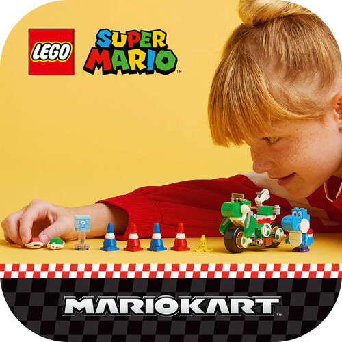 - Nintendo® gift idea for kids – Drive and drift on a brick-built model of the Yoshi Bike with this LEGO® Super Mario™: Mario Kart™ adventure toy playset