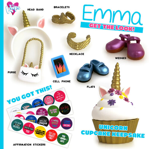 Each Character comes with Accessories, Fun Fashion Play, a Cupcake Keepsake™ (The World's Best Note Passer), and 20 Affirmation messages which are also Stickers!