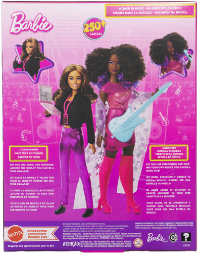 Barbie doll celebrates the world of Music with a music-loving careers set featuring two music industry roles together.