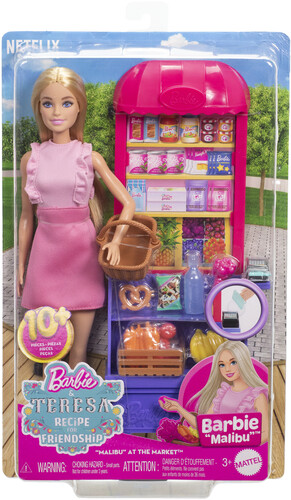 - Inspired by the movie Barbie and Teresa Recipes for Friendship, this Malibu at the Market set includes a grocery stand with colorful design and 2 shelves for product display!