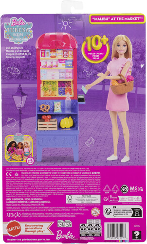 Imaginations can cook up all kinds of stories with the Malibu at the Market doll and playset. Inspired by the movie Barbie and Teresa Recipe for Friendship, the food-themed set lets kids decide what's on the menu.