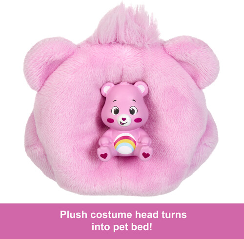 Discover more surprises like a skirt and matching mini Care Bears figure. Flip the plush top for an oversized jacket and the costume head for a pet bed.