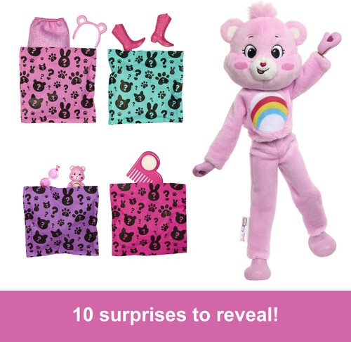 - With 10 surprises in 1 package, Barbie Cutie Reveal Care Bears dolls deliver the cutest unboxing experience with plush friends, fashions and transforming fun!