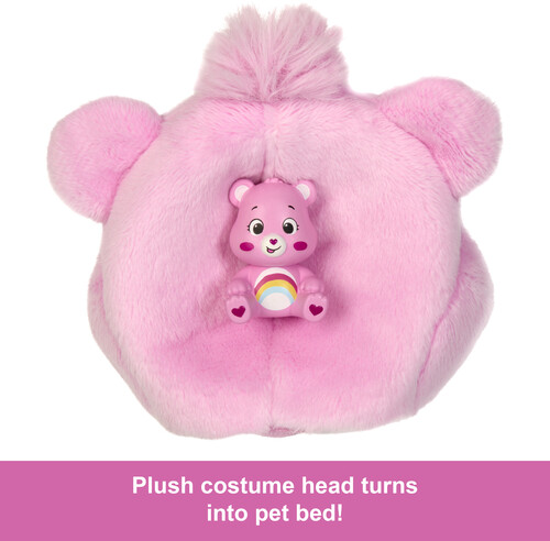 Then find more surprises like a skirt, headband, sunglasses, shoes, sponge-comb and matching mini Care Bear! Reverse the plush top for a fleece jacket and flip the costume head for a pet bed. Use water for even more cuteness with repeat color-change transformations on the doll's hair!