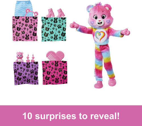 - With 10 surprises to discover, Barbie Cutie Reveal Care Bears dolls deliver an exciting experience for kids, packed with plush friends, sweet fashions and transforming fun Which doll will you reveal
