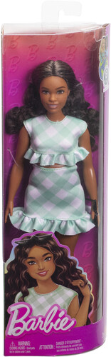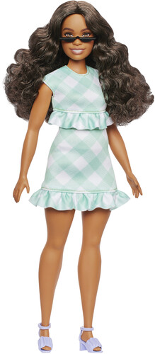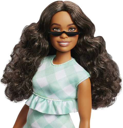 Mattel - Barbie Fashionistas Doll #240 in Green Gingham Dress And Sunglasses, Wavy Dark Brown Hair