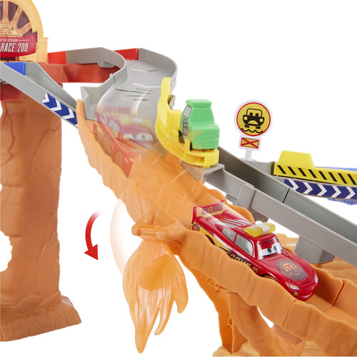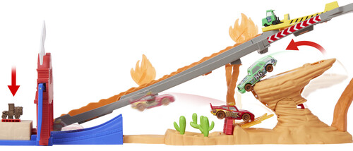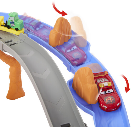 With the Disney and Pixar Cars Rescue Road Raceway playset, there are two ways to play: race Lightning McQueen against Chick Hicks or send the Lightning McQueen into rescue mode to clear the paths and be the hero. The set also includes two Pitty characters for enhanced storytelling.