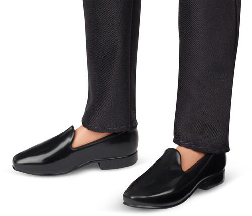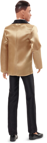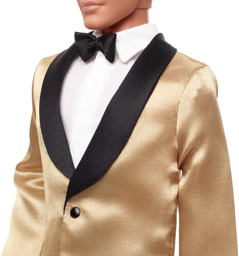In his premiere appearance for the beloved holiday collection, Ken looks debonair in a luxe golden satin shawl collar tuxedo jacket, black pants, black loafers, and a bowtie to round out the outfit. Designed to complement the golden tones in Holiday Barbie doll’s glittering gown, he’s a perfect addition to the annual tradition – and a must-have for collectors looking for a little extra cheer this holiday season.