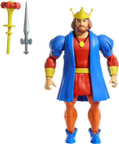 - A Scepter of Power and a Sword are included with the figure, inspired by He-Man and the Masters of the Universe episode 'The Magic Falls.' His royal cape is removable. A mini-comic is also included.
