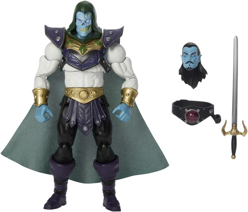 Includes 1 Masters of the Universe Masterverse New Eternia Keldor figure, 1 swappable head, 1 sword accessory and 1 holster accessory.