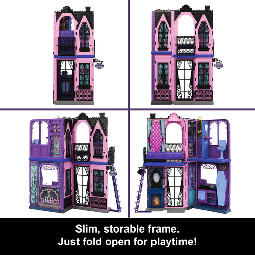 This enchanting doll house features spooky surprises in every room, as well as 13+ accessories for sparking imaginations. When playtime is over, fold the doll house for easy storage!