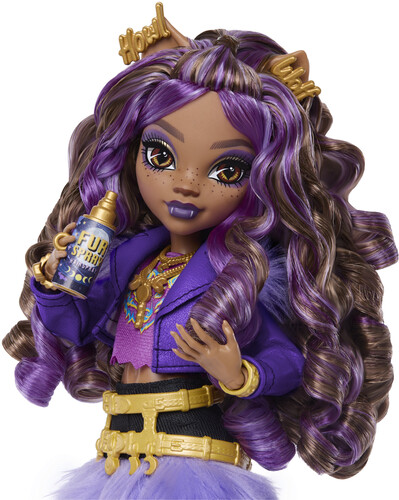 - Clawdeen Wolf doll also comes with styling and storytelling accessories: a crescent moon purse, shades, fur spray, iCoffin, moon phases book, and a cosmic croissant!
