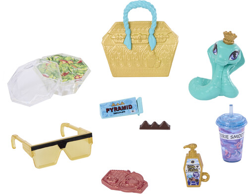 - Cleo De Nile doll also comes with styling and storytelling accessories: a tote bag, tinted shades, hand scream bottle, and iCoffin, as well as snacks like a salad, smoothie, and pyramid chocolate!