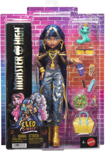 - Cleo De Nile doll's lurk is monstrously majestic to the max! With her pet cobra Hissette and 7 accessories, she's all set to rule the student bodies of Monster High in style.