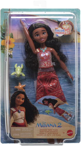 Includes 1 Moana doll wearing color-change top, skirt, necklace and anklet and 2 accessories.