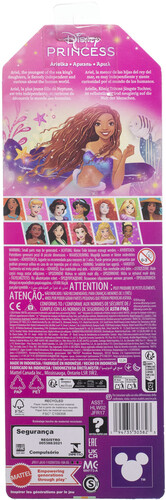 This posable fashion doll is shown in her mermaid look with a sparkling fabric fin. In her signature look inspired by the movie, this Ariel doll is ready for any adventure!