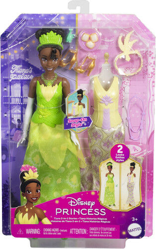 - Disney Princess 2-in-1 Stories Tiana fashion doll set has themed fashions and accessories for kids to play out two unique stories!