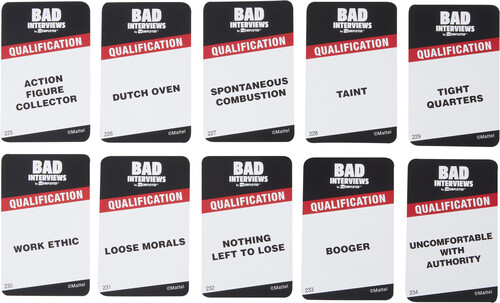 - Bad Interviews by Funemployed is a hysterical card game for adults where lying and BSing will definitely get players the job.
