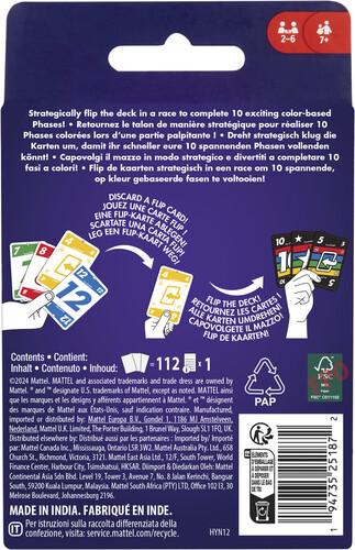 Players still race to complete 10 Phases, but with some unexpected twistslike a double-sided deck and special FLIP cards! One side of the deck features cards with standard colors, but the other side is ALL WILD!