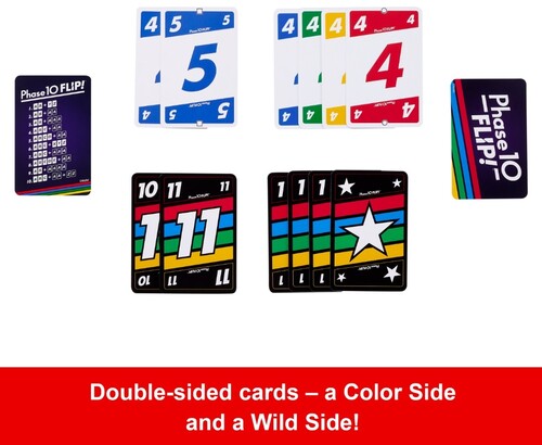 From the makers of UNO card game, Phase 10 Flip turns the classic Phase 10 card game on its head!