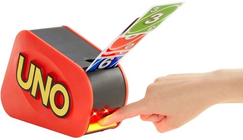 - This version of the UNO Attack® game brings action, suspense and surprise with its sleek look, cool sounds and high-shooting cards. Lights and sounds build over time for extra excitement!