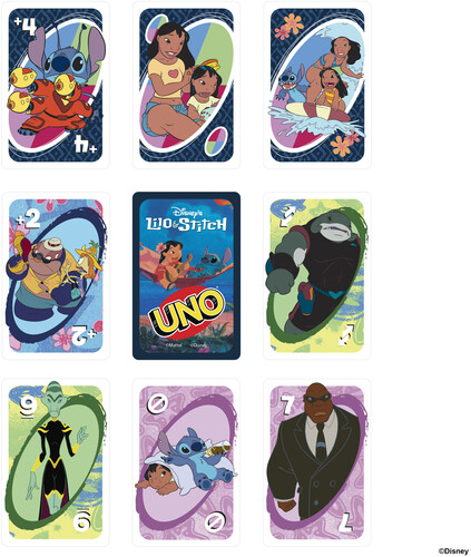 - The UNO game players love features graphics inspired by characters from Disney's Lilo and Stitch.